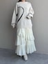 155cm|骨格ウェーブ 【ニット】 大きなハートが描かれたオーバーサイズニット♪ ヒップもすっぽり隠れる丈感です。 【スカート】 ランダムなティアードと細かいプリーツがフェミニンなスカート。 腰周りはスッキリなのでオーバーサイズのトップスも合わせやすいです♪ 【ブーツ】 しっかりヒールもありますが前底にも厚みがあるので高低差がなく疲れにくいブーツ♪ ファスナーがなく、履き口がニットなので足首が痛くなりにくいです◎ ※サンプルのためシューズはLサイズを着用していますが、普段は23.5cmでMサイズを履いています