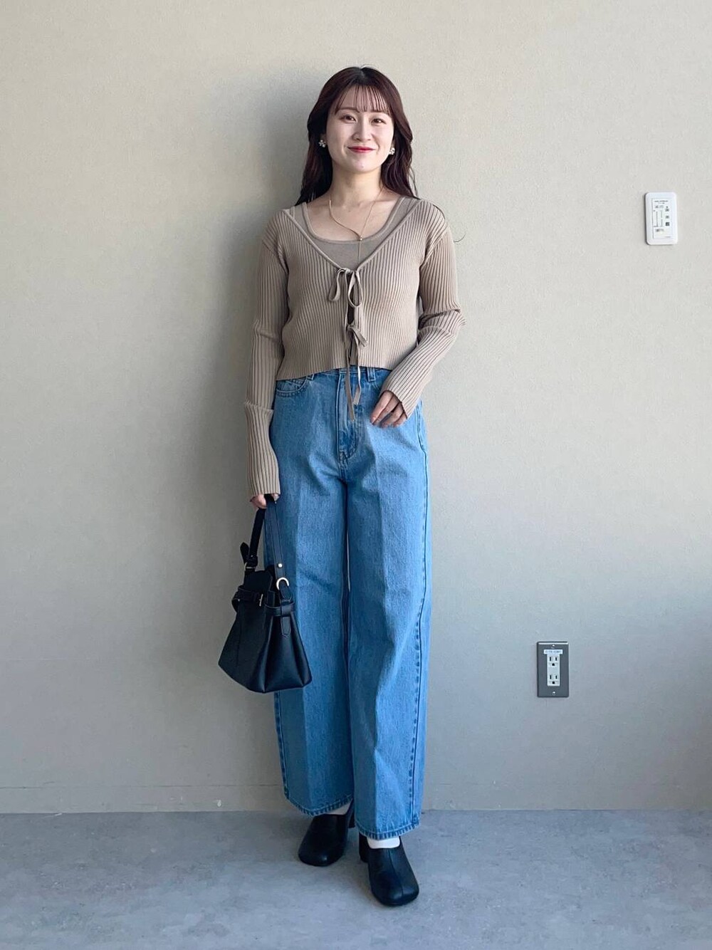 155cm|骨格ウェーブ 【トップス】 2連のリボンが可愛いリブトップス。 同生地のインナーもセットです♪インナーは前後2wayで、開き具合が選べます☺︎ 【デニム】 S.Mサイズ展開のSサイズ着用。 155cmでフラットシューズで引きずらず履けました◎ ハイウエストで脚が長く見えました👀 【パンプス】 太ヒールで安定感抜群のパンプス☺︎少し丸いラウンドスクエアが可愛らしい印象に♡ ※サンプルのためシューズはLサイズを着用していますが、普段は23.5cmでMサイズを履いています