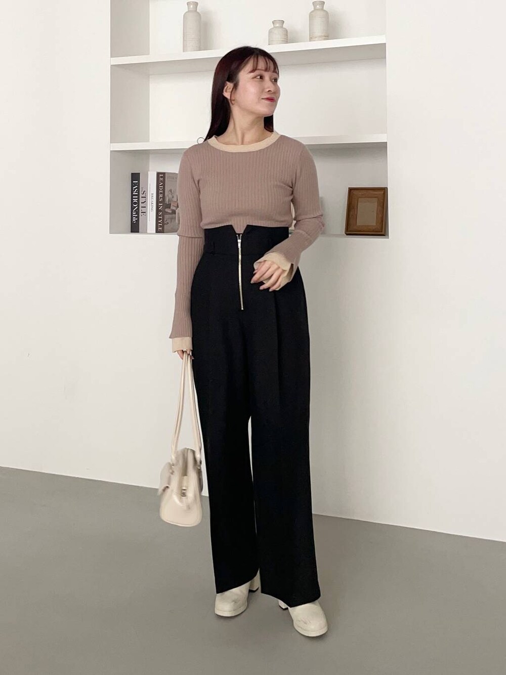 155cm|骨格ウェーブ 【ニット】 袖口や首元がバイカラーになったシンプルお洒落トップス☺︎ ジャンスカのインナーにもおすすめ! 【パンツ】 太すぎず細すぎずな綺麗めパンツ。 フロントファスナーで着脱しやすいです◎ 155cmでギリギリフラットシューズでも履ける丈でした♪