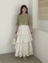 155cm|骨格ウェーブ 【トップス】 去年も大人気だったラッセルレーストップス! タンクトップがセットで別々でも着用可◎ パールボタンデザインがフェミニンな印象に♪ 【スカート】 ふりふりティアードの揺れ感が可愛いスカート♪ ボリュームが出過ぎないように腰回りはすっきりデザインです☺︎ 【サンダル】 フロント部分のギャザーが可愛いデザイン!スポサンでもカジュアルになりすぎない細めラインと厚底具合♪ ※サンプルのためシューズはLサイズを着用していますが、普段は23.5cmでMサイズを履いています