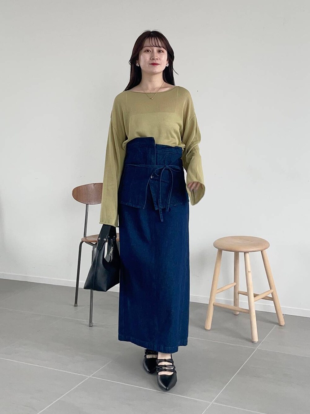 155cm|骨格ウェーブ 【トップス】 web限定ニットが復刻です! ゆるっとした袖口と身幅がどんなボトムスを合わせてもお洒落コーデに大変身⭐︎ 重ね着もできるシアータイプなので長く使えます☺︎ 【スカート】 コルセットとセットになったスカート♪ コルセットを胸元につけるとワンピース風に着用できます! オールシーズン履けるデニム素材☺︎ 【パンプス】 3連リボンがポイントのきれいめパンプス。かかと部分がゴム仕様なので脱ぎ履きしやすかったです♪ ※サンプルのためシューズはLサイズを着用していますが、普段は23.5cmでMサイズを履いています