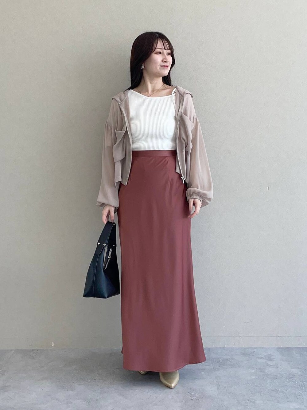 155cm|骨格ウェーブ 【パーカー】 毎年大人気のシアーパーカーが今年も❤︎ カジュアルになりがちなパーカーも、楊柳素材で フェミニンコーデにも合わせやすい! 上品な透け感なのでタンクトップにさらっと羽織るのも◎ 【トップス】 アシンメトリーで肩紐がポイントのリブニット♪ 伸縮性があり着心地が良いです。 ジャンスカやキャミワンピのインナーにも使えそうです☺︎ 【スカート】 程よくフィット感があり、コーディネートを上品な印象に見せてくれます。 伸縮性があるので履き心地がとてもよいです。 【パンプス】 3連リボンがポイントのきれいめパンプス。かかと部分がゴム仕様なので脱ぎ履きしやすかったです♪ ※サンプルのためシューズはLサイズを着用していますが、普段は23.5cmでMサイズを履いています