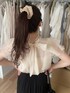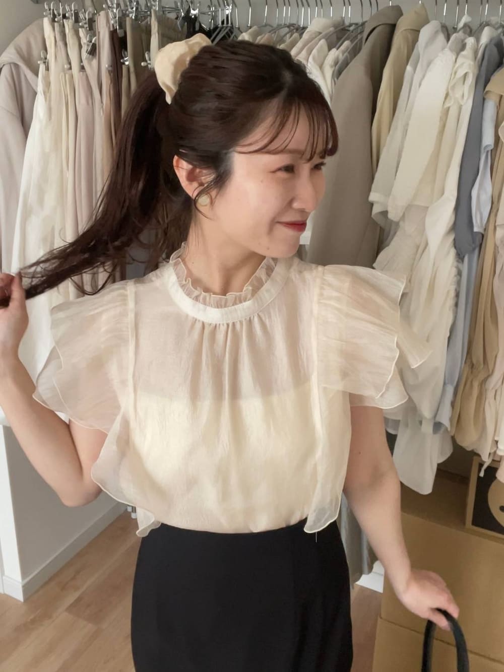 155cm|骨格ウェーブ 【ブラウス】 前後2wayで着られるフェミニンブラウス♡ ショルダー部分は2枚のシアー生地が二の腕をカバーしてくれます♪二の腕が気になる私にも着やすかったです☺︎