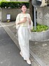 155cm|骨格ウェーブ 【トップス】 シアー&ゆるっとシルエットで夏でも涼しく着られるトップス。 WEBでしかゲットできないアイテム!カラバリが沢山でかわいいカラー名が付いているので是非チェックしてみてください♪ ビスチェやチュニックを重ねて着るのもおすすめです。 【スカート】 細見えがすごいパッチワークスカート! ビスチェやシャツとセットアップでも着られます◎ ナロースカートなのでミドル丈のトップスとも合わせやすいです。