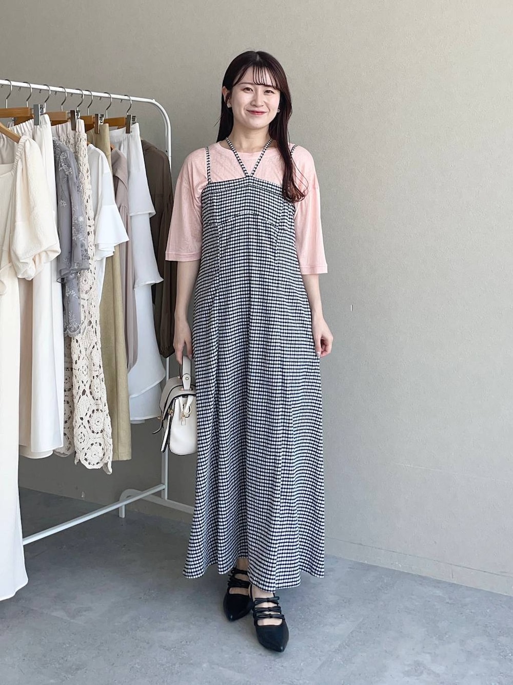 155cm|骨格ウェーブ 【トップス】 シアー&ゆるっとシルエットで夏でも涼しく着られるトップス。 WEBでしかゲットできないアイテム!カラバリが沢山でかわいいカラー名が付いているので是非チェックしてみてください♪ ビスチェやチュニックを重ねて着るのもおすすめです。 【キャミワンピース】 ストリングデザインがポイントのキャミワンピース! 柔らかい素材で伸縮性もあるので長時間の移動や旅行におすすめです☺︎ アジャスターで丈を調整できます♪ 【パンプス】 3連リボンがポイントのきれいめパンプス。かかと部分がゴム仕様なので脱ぎ履きしやすかったです♪ ※サンプルのためシューズはLサイズを着用していますが、普段は23.5cmでMサイズを履いています