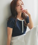 MiO(mysty woman 本部)のTシャツ/カットソー「[追加1]【WEB限定】無地&ボーダー/ヘンリーネック半袖Tシャツ 499729」を使ったコーディネート