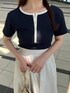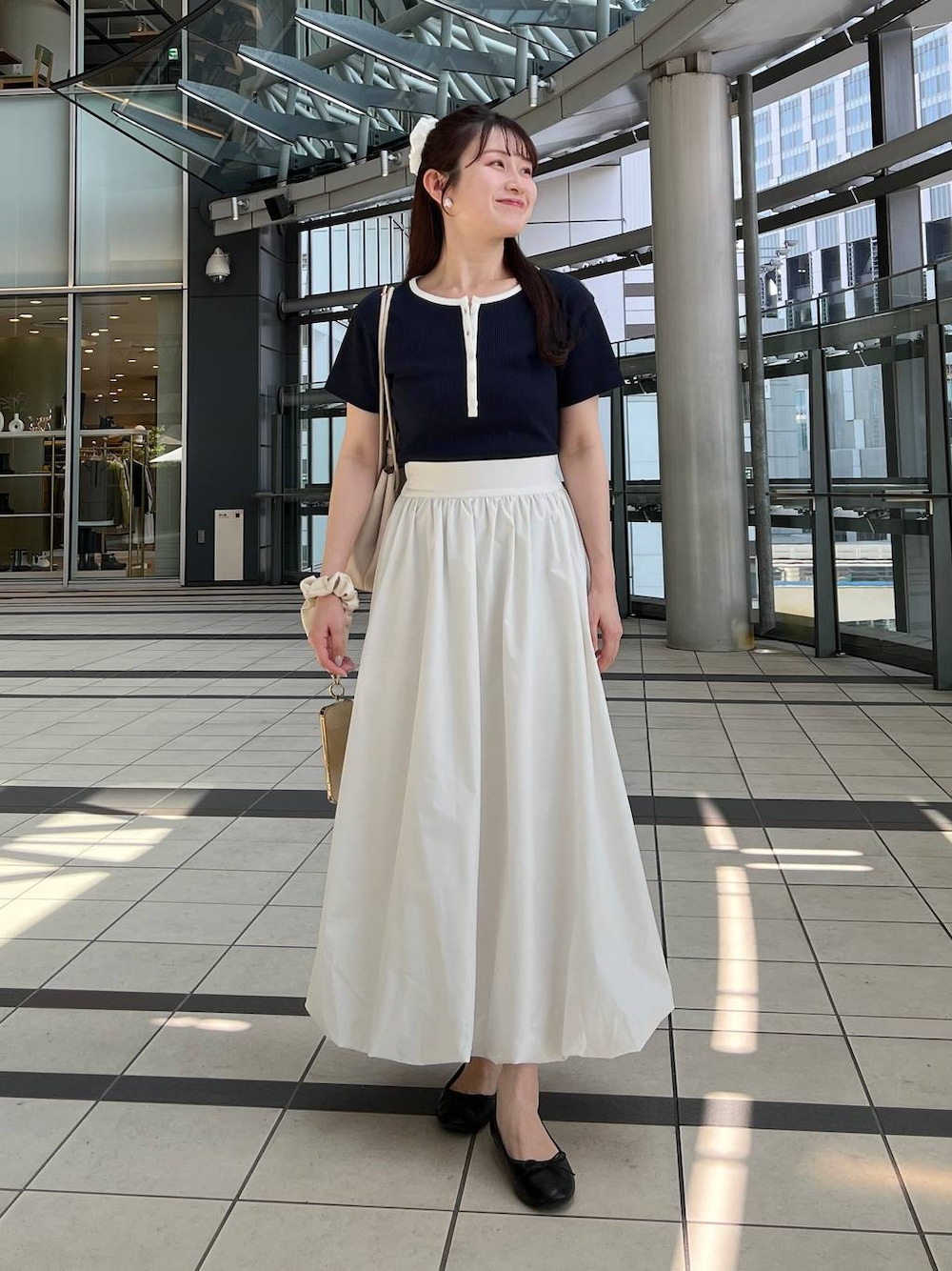 155cm|骨格ウェーブ 【トップス】 web限定のヘンリートップス♪ 程よくフィット感がありフレアスカートと相性◎ ボタンを2.3個開けて首回りをスッキリ見せる着方がおすすめです🙂↕️✨