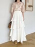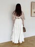 155cm|骨格ウェーブ 【ブラウス】 大好きなフローラル刺繍ブラウスの5分袖バージョン! 上品な刺繍デザインが高見えするデザインです。 これで洗濯もできちゃうなんて神すぎる!透け感あるのでインナーは必須です☺︎ 【スカート】 ふりふりティアードの揺れ感が可愛いスカート♪ ボリュームが出過ぎないように腰回りはすっきりデザインです☺︎ 【パンプス】 3連リボンがポイントのきれいめパンプス。かかと部分がゴム仕様なので脱ぎ履きしやすかったです♪ ※サンプルのためシューズはLサイズを着用していますが、普段は23.5cmでMサイズを履いています