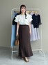 155cm|骨格ウェーブ 【ブラウス】 web限定のフリルたっぷりブラウス♡ 存在感があり着るだけでお洒落なコーデに!! たくさんのフリルが二の腕をカバーしてくれます🤭 スカートにもパンツにも合わせやすいブラウスです♪ 【スカート】 シンプルで着痩せして見えるマーメイドスカート! 縦に入ったラインが細見え効果抜群です◎ オールシーズン使えるので色違いで欲しくなるアイテムです☺︎ 155cmくるぶしくらいです。 【シューズ】 サテン素材の綺麗めミュール。さりげないダブルリボンも可愛さを出してくれます♪ ※サンプルのためシューズはLサイズを着用していますが、普段は23.5cmでMサイズを履いています