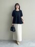 155cm|骨格ウェーブ 【ブラウス】 花柄のジャガード生地が高級感あるブラウス♡ 切り替えが胸下でスタイルアップ効果も◎ スカートでもすっきり合わせられるチュニックです。 裏地がついておらず涼しく着られます。 【スカート】 細ベルト付きのシンプルナロースカート。 生地がサラッとしていて綺麗めコーデに大活躍! オフィスコーデにも使えそうです◎ 【パンプス】 3連リボンがポイントのきれいめパンプス。かかと部分がゴム仕様なので脱ぎ履きしやすかったです♪ ※サンプルのためシューズはLサイズを着用していますが、普段は23.5cmでMサイズを履いています