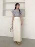 155cm|骨格ウェーブ 【ブラウス】 程よい透け感で上品に着られるチェック柄ブラウス♪ 少しハリがあり、フリルが崩れないのが嬉しいポイント。 大人かわいく着られます☺︎ 【スカート】 骨格ウェーブの私には、ものによっては骨盤が目立ちやすいナロースカートですが このスカートは程よくゆとりがあり骨盤が目立たない!むしろ細見えしまくりました!!! 全体的に伸縮性があるので履き心地も良いし、インスタイルでもミドル丈を合わせたスタイリングもできるのがフェミニン女子にとっては嬉しいポイントです♪ 【パンプス】 3連リボンがポイントのきれいめパンプス。かかと部分がゴム仕様なので脱ぎ履きしやすかったです♪ ※サンプルのためシューズはLサイズを着用していますが、普段は23.5cmでMサイズを履いています