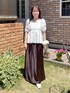 MiO(mysty woman 本部)のスカート「【ウエストオールゴムで着脱楽ちん!】【WEB限定】サテンフレアスカート 452421」を使ったコーディネート