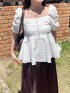 155cm|骨格ウェーブ 【ブラウス】 花柄のレース刺繍が可愛いブラウス♡ スクエアネックがスッキリみせてくれ、パフスリーブで寂しくならない骨格ウェーブにぴったりなデザイン◎ さらにペプラムデザインで裾はふんわり広がるためウエストや腰回りが隠せます♪ 【スカート】 web限定のサテンスカート♪ ウエストが総ゴムでとにかく履きやすい! 緩やかに広がるフレアシルエットなので身体のラインも拾いにくいです。 サテン素材なので履くだけでコーデが高見えします♡