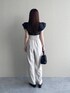 155cm|骨格ウェーブ 【ブラウス】 程よい透け感で上品に着られるチェック柄ブラウス♪ 少しハリがあり、フリルが崩れないのが嬉しいポイント。 大人かわいく着られます☺︎ 【パンツ】 少しとろみのあるハイウエストパンツ。 155cmの私で、少し裾がずってしまうのでヒール合わせで穿いてます。 オフィスでも穿けそうです◎ 【ミュール】 Vカット&スクエアトゥがシンプルでコーディネートに取り入れやすいミュール。 程よいヒールで歩きやすいです。 ※サンプルのためシューズはLサイズを着用していますが、普段は23.5cmでMサイズを履いています