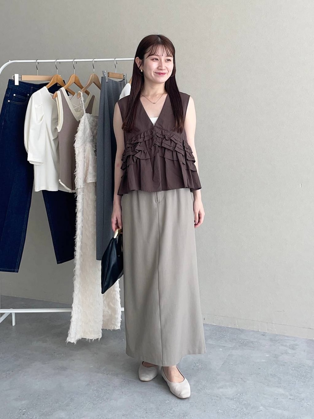 155cm|骨格ウェーブ 【ベスト】 私には少し珍しいベストをレイヤードしたコーディネート♪ 短丈で低身長には嬉しい◎ さらにカジュアルになりがちなベストにちびフリルがたくさん付いていてフェミニン女子にも着やすいデザイン🤝🏻 軽量なのでレイヤードしても重たく感じなかったです♪ 【スカート】 毎度大人気のコルセットセットスカート。 スカートの着回しです。 すっきりなナローシルエットなのでトップスをアウトで着たり、ミドル丈のトップスも合わせやすいです◎