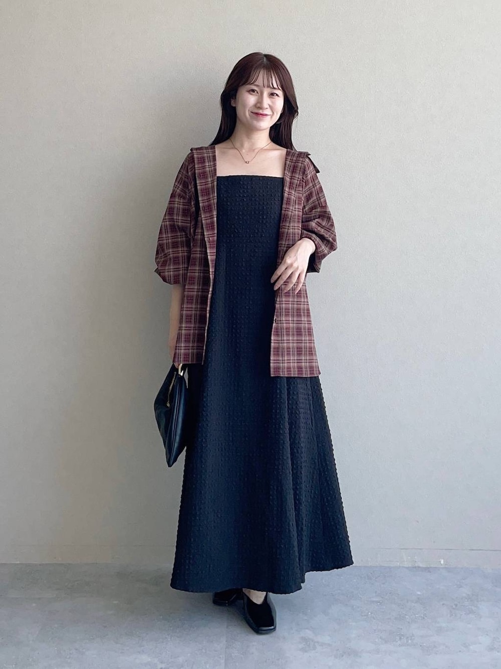 155cm|骨格ウェーブ 【シャツ】 チェック柄のビスチェとシャツのセットアイテム。 シャツはオーバーサイズでゆるっとカジュアルなコーディネートも楽しめそう◎ 袖口がキャンディスリーブになっているのもフェミニン女子が着やすいポイント! 【キャミワンピ】 WEB限定のアソート柄ワンピース♡ 胸下の切り替えからふんわり広がるデザインです。 花柄はストンと落ちるつやっとした生地、そのほかはポコポコとした生地で少しカジュアルにも着られます◎ 下にトップスを着たり、上からカーディガンやシャツを羽織る着方もでき、着方を楽しめます。 【ミュール】 Vカット&スクエアトゥがシンプルでコーディネートに取り入れやすいミュール。 程よいヒールで歩きやすいです。 ※サンプルのためシューズはLサイズを着用していますが、普段は23.5cmでMサイズを履いています