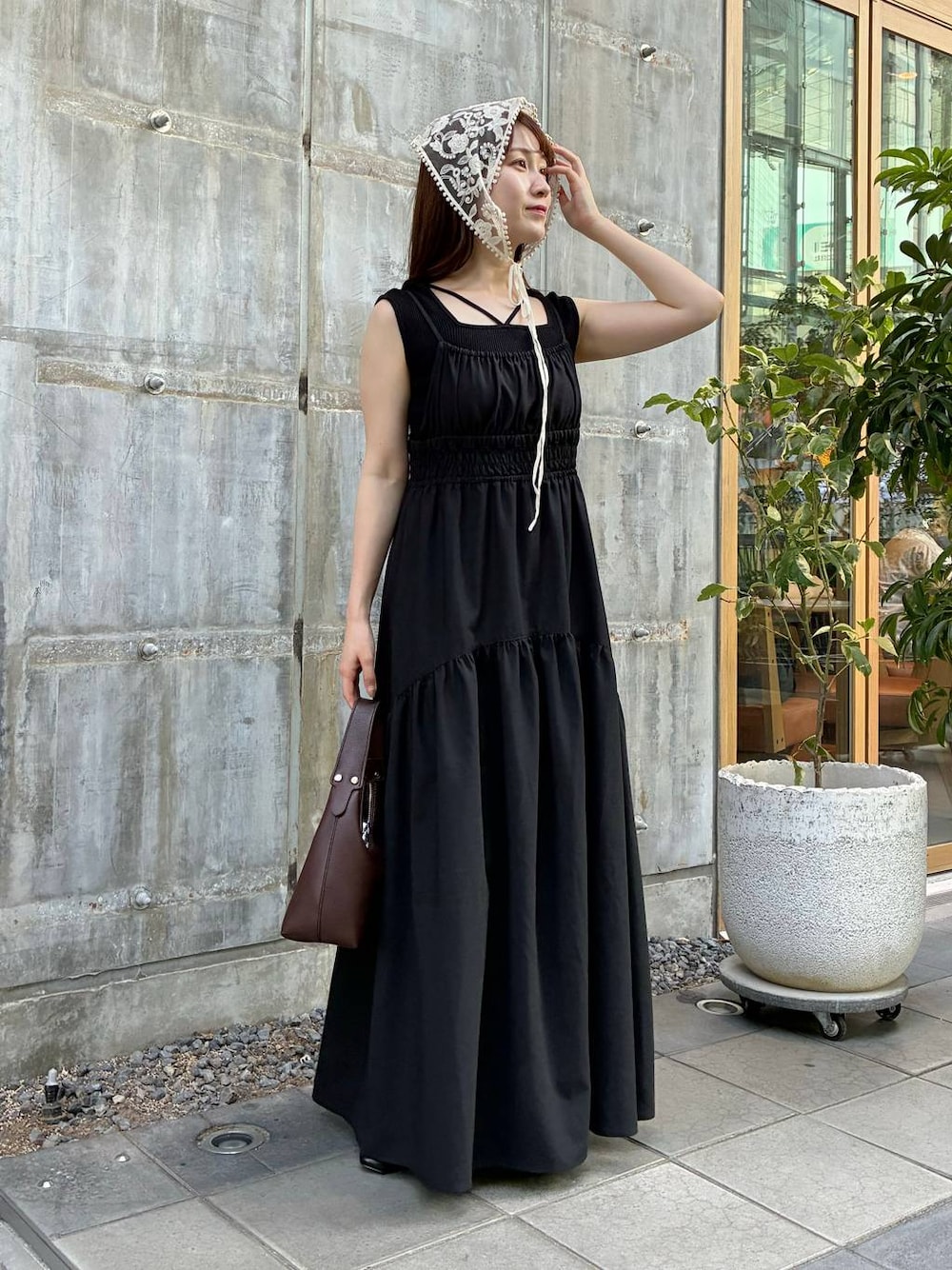 155cm|骨格ウェーブ 【ワンピース】 ファスナーなし!裏地なし!楽ちんで涼しく着られる激推しキャミワンピース♡ 胸下のギャザーはめちゃめちゃ伸びるので苦しくないです♪ アジャスター付きなので丈は調整できます◎ 【バブーシュカ】 つけるだけで一気にお洒落コーデに! ビスチェ風にアレンジするのはもちろん、頭に巻くとトレンドコーデに☺︎