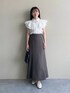 155cm|骨格ウェーブ 【ブラウス】 程よい透け感で上品に着られるチェック柄ブラウス♪ 少しハリがあり、フリルが崩れないのが嬉しいポイント。 大人かわいく着られます☺︎ 【スカート】 バックレースアップでサイズの調整ができるスカート♪ 自分の体型に合わせて調整できるので低身長の方にも履いていただきやすいです◎ 155cmで足首くらいの長さです。 【ミュール】 Vカット&スクエアトゥがシンプルでコーディネートに取り入れやすいミュール。 程よいヒールで歩きやすいです。 ※サンプルのためシューズはLサイズを着用していますが、普段は23.5cmでMサイズを履いています