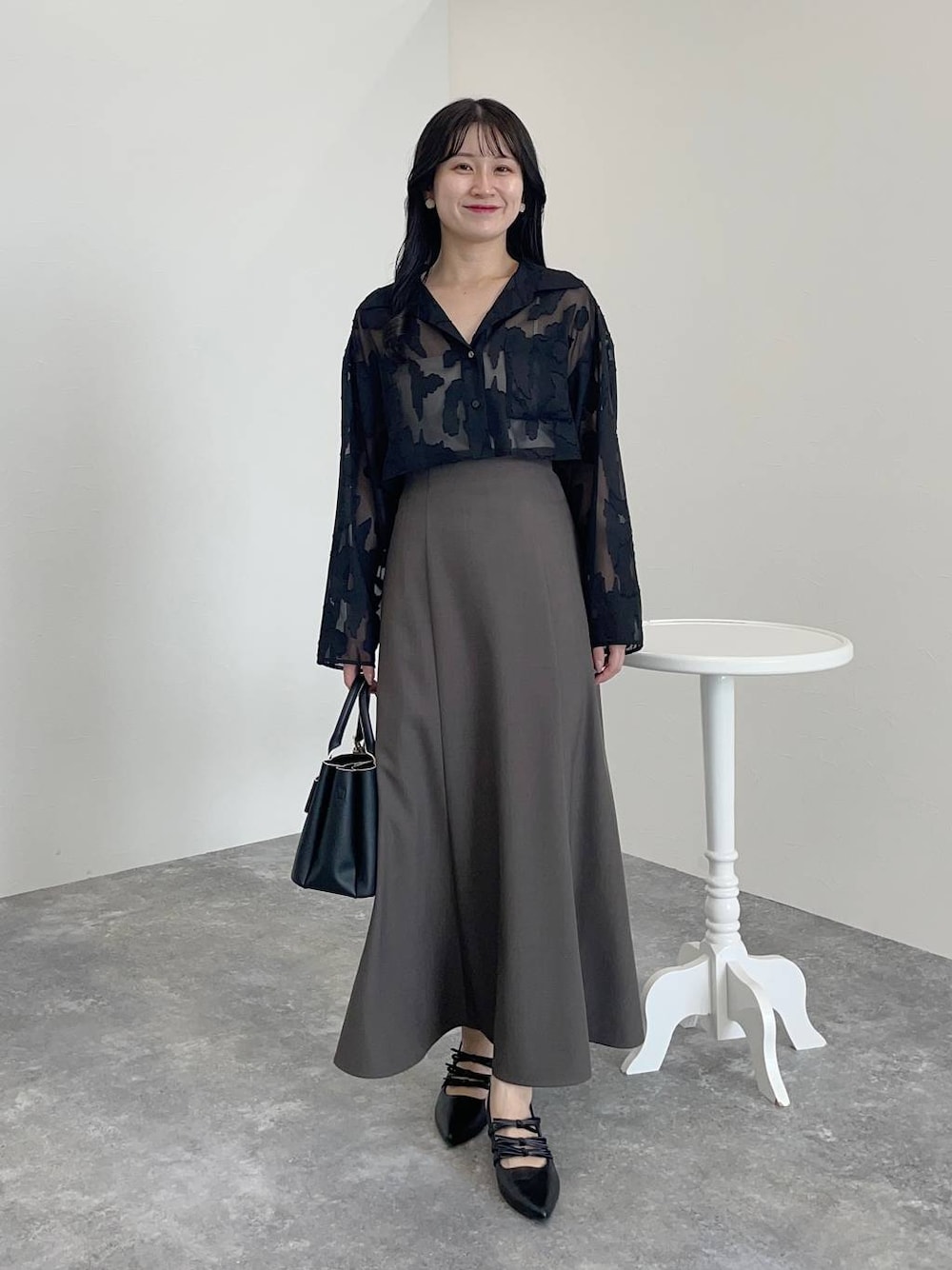 ショートシャツの着回しコーデ! 【シャツ】 シャツとキャミワンピのセットアイテム♪ シャツの着回しです。 ショート丈のシャツはハイウエストのボトムスと合わせるのがおすすめ☺︎ 【スカート】 バックレースアップでサイズの調整ができるスカート♪ 自分の体型に合わせて調整できるので低身長の方にも履いていただきやすいです◎ 155cmで足首くらいの長さです。 【パンプス】 3連リボンがポイントのきれいめパンプス。かかと部分がゴム仕様なので脱ぎ履きしやすかったです♪ ※サンプルのためシューズはLサイズを着用していますが、普段は23.5cmでMサイズを履いています 155cm|骨格ウェーブ