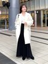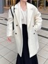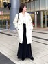 綺麗すぎるオフホワイトのシャギーコートを使ったモノトーンコーデ 【アウター】 ウールとアルパカ混であたたかいのはもちろん、とても軽いことに感動🥺 ミドル丈でヒップは暖かく、ややコクーンシルエットでかわいらしさも✨ 【ニット】 スッキリと開いたVネックが細見え効果あり◎ 開きすぎていないのもポイント高め!! さりげないラメ入り生地も高見えします♪ 155cm|骨格ウェーブ