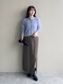 【アウター】 オーバーサイズのショート丈コート☺︎ アームホールはゆとりがあるので厚手ニットも楽々着られます♪ 少し抜いて着るのがこなれ感出ておすすめ! 【カーディガン】 羽織りでも、プルオーバーとしても使いやすいサイズ感のカーディガン。 冬に着たくなるラメ×シャギーは着るだけでフェミニンな印象に♡ 【スカート】 スリット入りで一癖あるナロースカート。(スリットが見えていないですが泣) スリットが入っていることで足捌きしやすく、ロングブーツを履いてチラッと見せるのもお洒落☺︎ 【ショートブーツ】 ポインテッドトゥが脚を綺麗に見せてくれるブーツ。ストレッチがきいているので靴擦れもしにくく履きやすいです。 ※サンプルのためシューズはLサイズを着用していますが、普段は23.5cmでMサイズを履いています 155cm|骨格ウェーブ