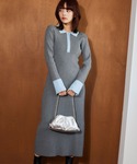【ワンピース】 バイカラーのニットワンピース✨ 1枚でおしゃれに楽に着られます☺︎ 身体のラインは出やすいですが下着の境目がわかるほどではないので安心! 155cm|骨格ウェーブ