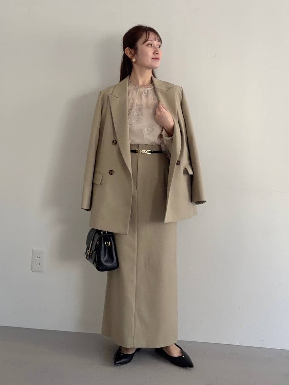 セレモニーシーンにも大活躍なセットアップコーデ。 【ジャケット】 デイリーにもセレモニーシーンでも羽織れるジャケット。 薄手のニットはインできる、ややオーバーサイズなシルエット。 【スカート】 細見えスカート✨ S.M展開で、Mサイズ着用。くるぶしくらいの長さです。 セットアップ対応で、オフィスやセレモニーシーンでも大活躍間違いなしです。 155cm|骨格ウェーブ