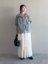 【パーカー】 ゆるっとがたまらないパーカー! 抜け襟デザインで女性らしさもプラスされます。 カジュアルになりがちなパーカーですが、甘めのスカートを合わせると綺麗めカジュアルなコーデが楽しめます。 【スカート】 ふんわり広がるティアードデザインが可愛すぎる! ウエストにはファスナーがなく、ゴム仕様で楽な穿き心地。 オールシーズン穿けます。 【ショートブーツ】 ポインテッドトゥが脚を綺麗に見せてくれるブーツ。ストレッチがきいているので靴擦れもしにくく履きやすいです。 ※サンプルのためシューズはLサイズを着用していますが、普段は23.5cmでMサイズを履いています 155cm|骨格ウェーブ