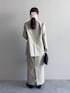 セレモニーシーンにも大活躍なセットアップコーデ。 【ジャケット】 デイリーにもセレモニーシーンでも羽織れるジャケット。 薄手のニットはインできる、ややオーバーサイズなシルエット。 【トップス】 ネックにパールとフリルが施された上品ブラウス。 袖口はゴム入りでふんわりと自然なボリューム袖に。 オフィスやセレモニーシーンにぴったりです! 【スカート】 細見えスカート✨ S.M展開で、Mサイズ着用。くるぶしくらいの長さです。 セットアップ対応で、オフィスやセレモニーシーンでも大活躍間違いなしです。 155cm|骨格ウェーブ
