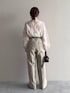 セレモニーシーンにも大活躍なセットアップコーデ。 【ジャケット】 デイリーにもセレモニーシーンでも羽織れるジャケット。 薄手のニットはインできる、ややオーバーサイズなシルエット。 【パンツ】 Mサイズ着用。少し長かったのでベルトを絞って留めています。 ややゆとりのあるストレートシルエットで脚のラインが出ないので安心◎ 【ローファー】 シンプルで流行り廃りなく履けるローファー◎フロントのコインがポイントに☺︎ ※サンプルのためシューズはLサイズを着用していますが、普段は23.5cmでMサイズを履いています 155cm|骨格ウェーブ
