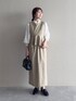 【トップス】 ネックにパールとフリルが施された上品ブラウス。 袖口はゴム入りでふんわりと自然なボリューム袖に。 オフィスやセレモニーシーンにぴったりです! 【ジャンスカ】 ペプラムデザインでスタイルアップ+ウエスト周りがカバーできる◎ ノースリーブなのでインナー次第でオールシーズン着用できます。 【ローファー】 シンプルで流行り廃りなく履けるローファー◎フロントのコインがポイントに☺︎ ※サンプルのためシューズはLサイズを着用していますが、普段は23.5cmでMサイズを履いています 155cm|骨格ウェーブ