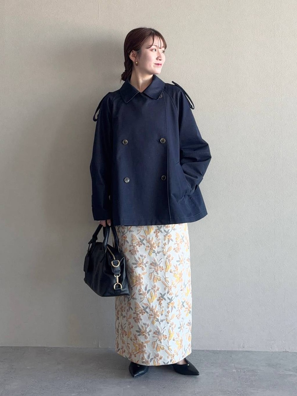 【トレンチコート】 ネックとウエストベルトで着方を変えられるトレンチコート。ヒップにかかるくらいの長さでバランスがとりやすい☺︎ 程よくハリがあるけど窮屈感はなく着やすいです◎ 【スカート】 光沢感のある上品スカート。 程よくゆとりのあるサイズ感で薄手ニットをインしたり、ミドル丈のカーディガンを合わせてもすっきり! 155cm|骨格ウェーブ