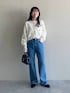 【カーディガン】 ニットタンクとセットのショートカーディガン。 カーディガンのみ着用。 甘くなりすぎないヴィンテージライクな花柄がさりげなくポイントに!Vネックがゆるい抜け感をつくることができバランスもとりやすい◎ 【トップス】 web限定のシアーロンT! ゆるっとしたサイズで柔らかくて着心地が良すぎる… ふんわりとしたマカロンのような優しいカラバリで全7色展開✨ マカロンとロンTをかけて可愛いお名前がついてます☺️ 3000円以下でとってもプチプラ…🥲🩷 【デニム】 Mサイズ着用。少し長かったのでヒールを穿いた方が綺麗なシルエットで穿けます。 色落ちがきれいで長く穿ける国産デニムです。 155cm|骨格ウェーブ