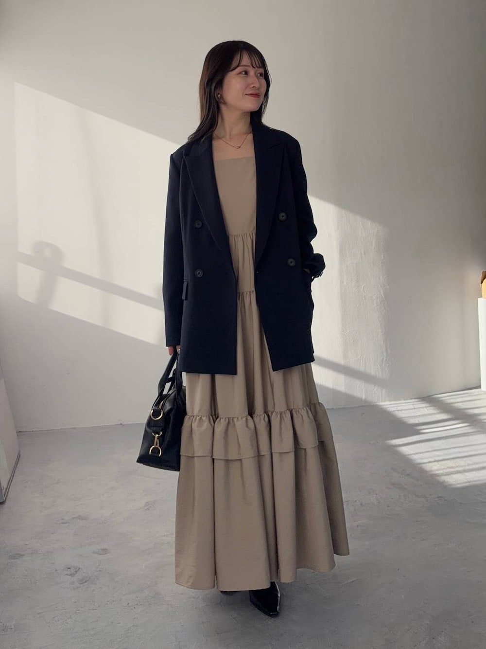 【ジャケット】 デイリーにもセレモニーシーンでも羽織れるジャケット。 薄手のニットはインできる、ややオーバーサイズなシルエット。 【ワンピース】 ショートカーディガンとキャミワンピースのセットアイテム。 ワンピースの着回しです☺︎ ウエストの切り替え位置が高くスタイルアップできます! 155cm|骨格ウェーブ