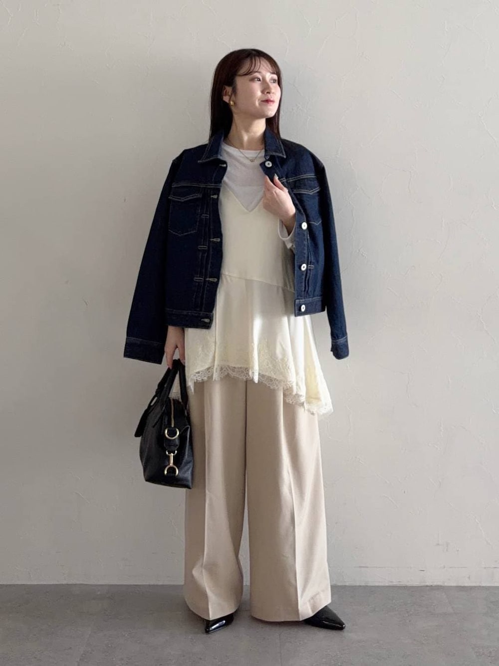 【ジャケット】 春定番のデニムジャケット。 レギュラー丈で着回しがしやすく1着あると長使えます◎ 【トップス】 web限定のシアーロンT! ゆるっとしたサイズで柔らかくて着心地が良すぎる… マカロンとロンTをかけて可愛いお名前がついてます☺️ 3000円以下でとってもプチプラ…🥲🩷 【チュニック】 お洒落にレイヤードコーデを楽しめるキャミチュニック! vネックで、ウエストあたりの切り替えがアシンメトリーなのでキャミをメインで着る時もかわいい👀 裾の長さもランダムなので上からニット重ねた時もとってもポイントになる☺︎ 【パンツ】 ジャケットとセットアップで穿けるワイドパンツ。 Mサイズ着用で少し大きいのでウエストを1回折っています。 きれいめコーデにも取り入れやすい落ち感のある生地で穿き心地も○ 155cm|骨格ウェーブ