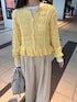 【カーディガン】 透かし編み柄、ペプラムデザインが目を引くショート丈カーディガン! プルオーバーで着用してするのがお気に入り☺︎ ペプラムデザインなのでウエストまわりをカバーできる◎ 【パンツ】 ジャケットとセットアップで穿けるワイドパンツ。 Mサイズ着用で少し大きいのでウエストを1回折っています。 きれいめコーデにも取り入れやすい落ち感のある生地で穿き心地も○ 155cm|骨格ウェーブ