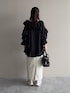 【ブラウス】 襟や裾以外に、腕にもフリルが施されていて華やかに着られるデザイントップス! 前後差があり、後ろはヒップが隠れる長さ。 首元は空いているのですっきり着られます!! 【スカート】 Mサイズ着用。 タイトすぎないシルエットで生地も柔らかく穿きやすいです◎ 硫化染めされているため少しヴィンテージっぽいデザイン。 155cm|骨格ウェーブ
