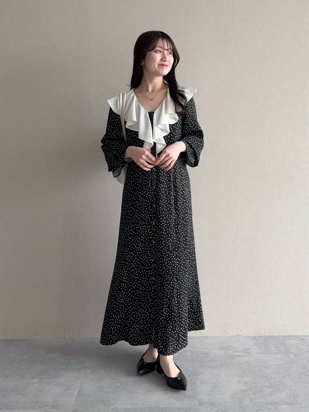 【ワンピース】 ドット柄にフリルと大好きが詰まったデザインワンピース♪ 安定に胸下切り替えでスタイルアップも叶う!骨格ウェーブ大優勝ワンピース◎ 155cm|骨格ウェーブ