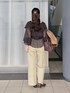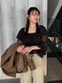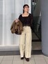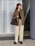 【ブルゾン】 柔らかいレザーで羽織りやすい◎ 季節の変わり目のアウターとしてもおすすめです。 【ブラウス】 フリルのシアーカーディガンとキャミがセットのアイテム☺︎ 全体的にボリュームがあるけど首元は開いているのですっきり見えます◎ 【パンツ】 Sサイズ着用、ウエストぴったり! 折り返し場所は自由に変えられるので身長問わず穿けます。 脚のラインが隠せるのがいい! 155cm|骨格ウェーブ