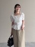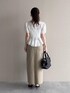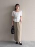 【トップス】 ネックの開きが骨格ウェーブの私には理想的🥹 デコルテは見えるけど開きすぎていなくて貧相に見えない👀✨ アウトで着られるしとにかく細見えします 【スカート】 Mサイズ着用。 タイトすぎないシルエットで生地も柔らかく穿きやすいです◎ 硫化染めされているため少しヴィンテージっぽいデザイン。 155cm|骨格ウェーブ