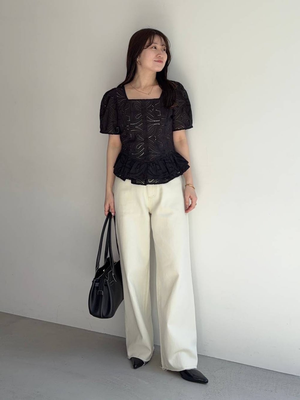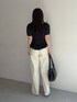 【トップス】 ネックの開きが骨格ウェーブの私には理想的🥹 デコルテは見えるけど開きすぎていなくて貧相に見えない👀✨ アウトで着られるしとにかく細見えします 【パンツ】 ほどよくこなれ感の出るワイドストレートパンツ ツイル素材で生地がしっかりしながらもかたすぎず穿きやすいです☺︎ 155cm|骨格ウェーブ
