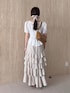 【トップス】 ネックの開きが骨格ウェーブの私には理想的🥹 デコルテは見えるけど開きすぎていなくて貧相に見えない👀✨ アウトで着られるしとにかく細見えします 【スカート】 フリルデザインなのに広がりすぎず上品に穿けるスカート。 腰まわりにはフリルがないのですっきり!骨格ウェーブの私でも綺麗に穿けました。 シンプルなトップスに合わせるだけでコーデが映えます◎ 155cm|骨格ウェーブ