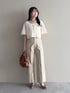 大人気のカーディガン×タンクセットが今年はWEB限定で販売〜!淡色でまとめたよ☺︎ 【トップス】 タンクトップがセットで別々でも着用可◎ フレアスリーブ、パールボタンデザインがフェミニンな印象にしてくれます♪ 【パンツ】 Sサイズ着用、ウエストぴったり! 折り返し場所は自由に変えられるので身長問わず穿けます。 脚のラインが隠せるのがいい! 155cm|骨格ウェーブ