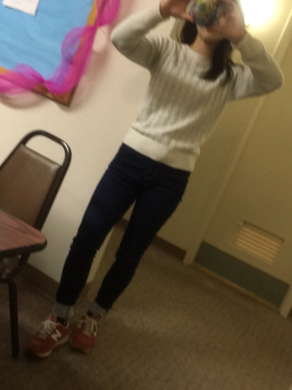 オレンジのニューバランスのスニーカーでハズしてみました。テーマは甘辛mixです。メイクの詳細はWebで。