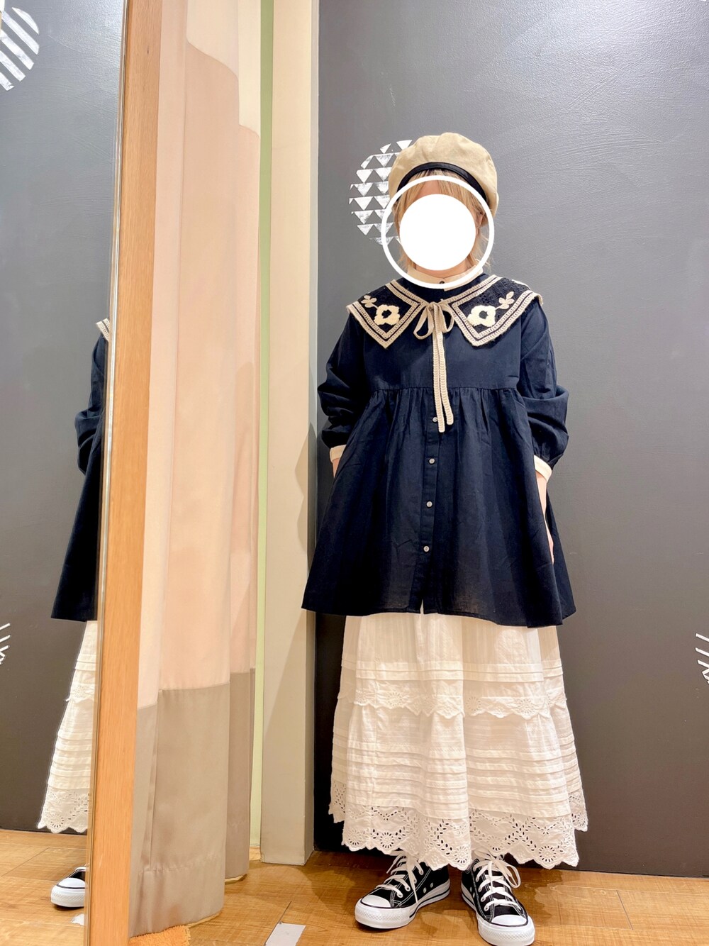 モ モ コのストール/ショール「さがら刺繍付け襟」を使ったコーディネート