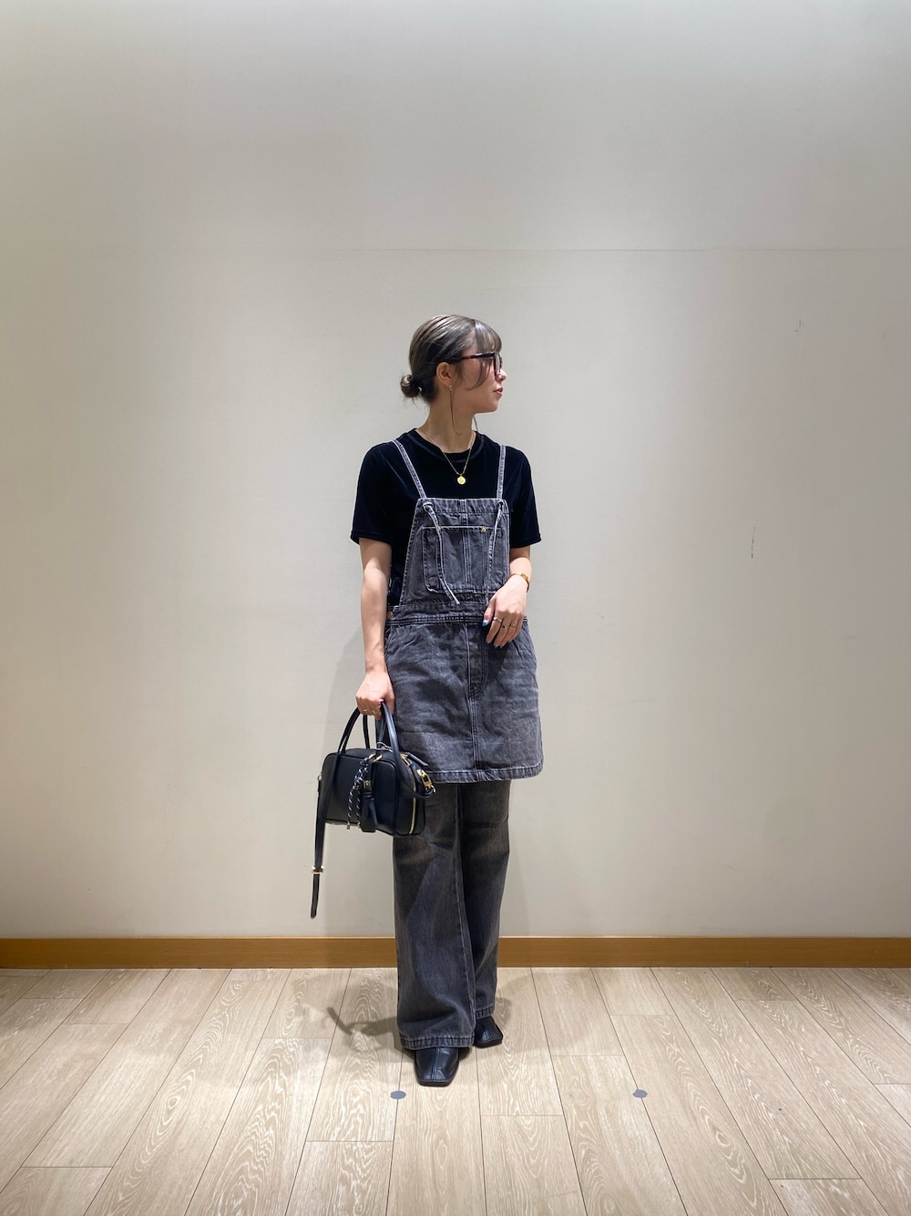 サロペット型のチュニックが入荷❕ グレーのデニムだと幼くならずに◎ 同じグレーデニムで合わせるとセットアップ風になってより可愛い✨ Tシャツや薄手のカットソー、ニットにプラスワンでおすすめです✅