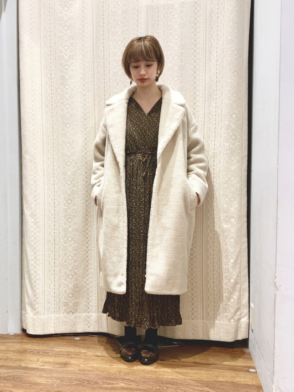 ‼️本日ZOZOTOWNでは、アースが¥1000クーポン対象です‼️ ボアチェスターコート。 少し大きめでゆったりしたシルエットです。 ホワイトとモカの2色で、やわらかい色合いです◎ ワンピースは、広瀬すずさんとのコラボアイテム。カシュークールのプリーツワンピです!