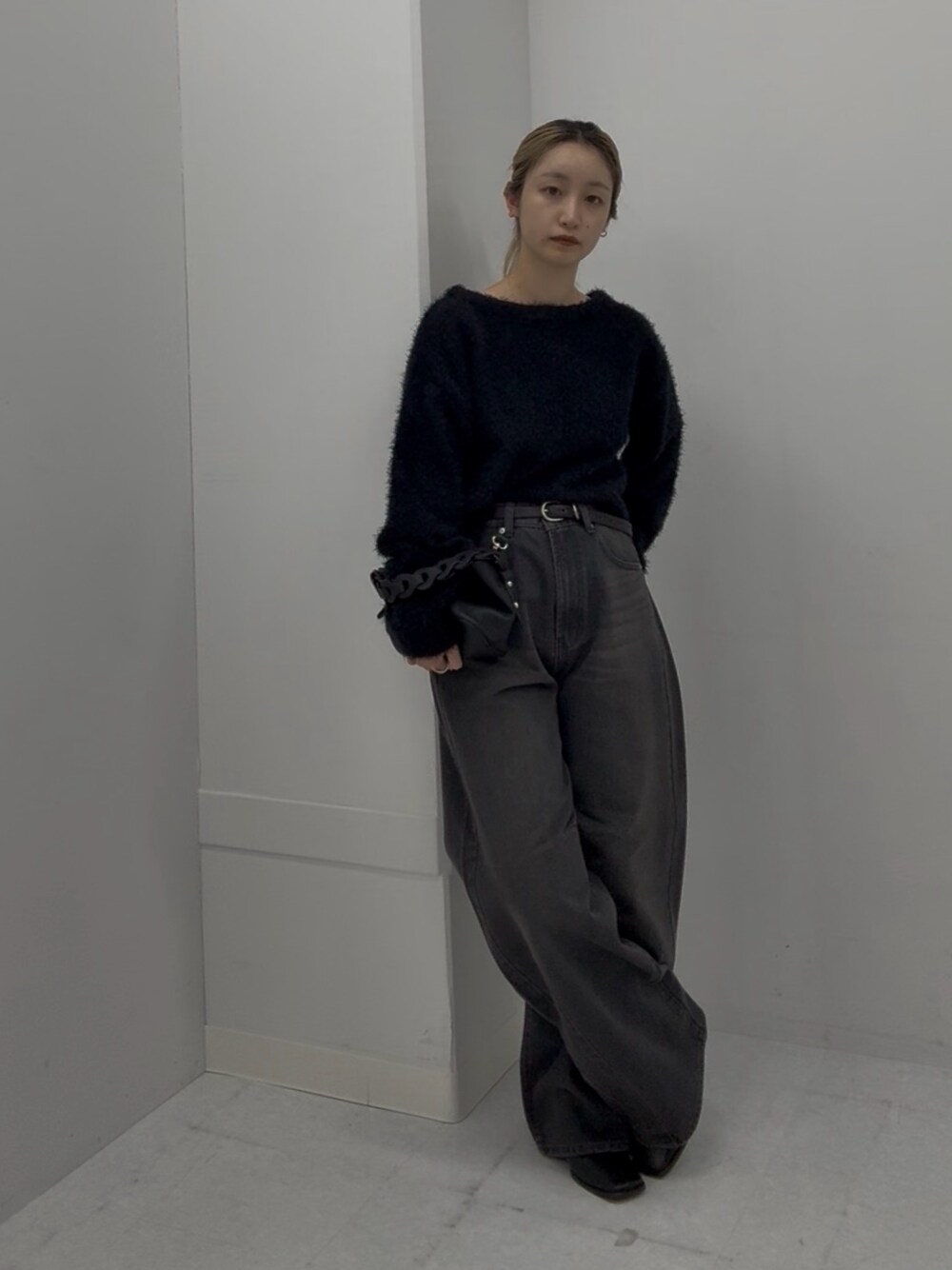 今季気になるシャギーニットを取り入れたコーデ。 毛足が長くレディな要素が強いアイテムなので、あえてカジュアルなデニムと合わせてみました。 ニットの丈が短めなので、この上からロングコートを合わせていただくとバランスがとりやすいです🤲