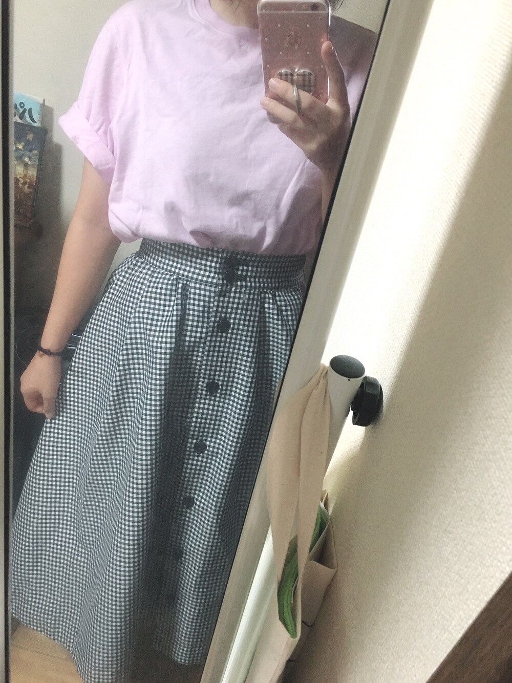 Tシャツ / UNIQLO スカートのシルエットが すごくきれいです。