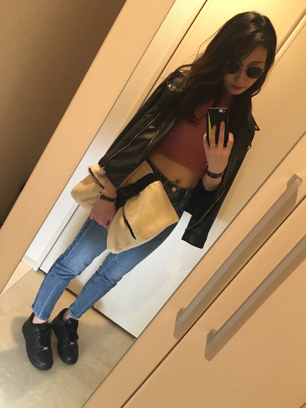お気に入りcode👖💞 先取りでライダース×ファーバック🙆🏻 大好き冬❄⛄🎿🏂がくる❤️💓 今年はActiveに行けたらいいな、、😂